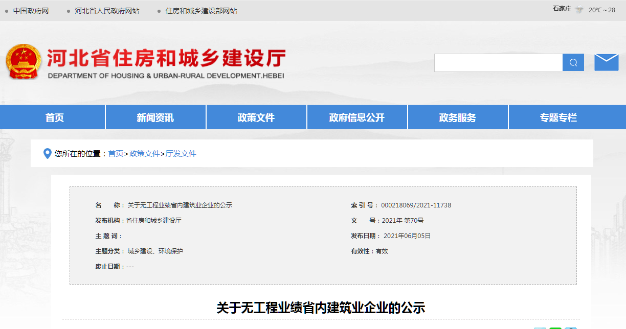 關(guān)于無工程業(yè)績(jī)省內(nèi)建筑業(yè)企業(yè)的公示
